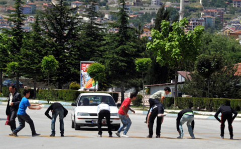 Galerinin tamamı için tıklayınızTokat'ta bir grup ilköğretim öğrencisi, internetteki bir paylaşım sitesinde gördükleri görüntüden esinlenerek, vatandaşların şaşkın bakışları altında trafik ışığındaki yaya geçidine dizilerek ''birdirbir'' oynadı.