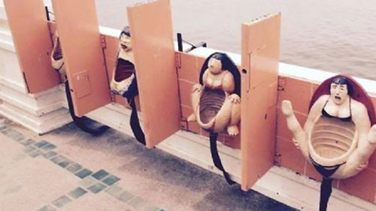 Chon Buri'deki Bang Saen sahilindeki umumi tuvalette çekilen resimlerde açıkça görülüyor ki pisuarların giderlerinden akan her şey borularla denize boşaltılıyor.