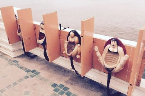 Chon Buri'deki Bang Saen sahilindeki umumi tuvalette çekilen resimlerde açıkça görülüyor ki pisuarların giderlerinden akan her şey borularla denize boşaltılıyor.