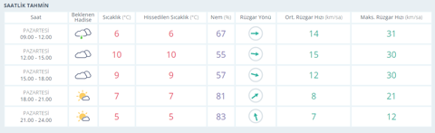 Meteoroloji Genel Müdürlüğü, 5 günlük hava durumu raporunu haritalı olarak paylaştı. Haftanın ilk günü yani 6 Mart Pazartesi tarihinde havanın detaylarına yer veren Meteoroloji, 33 kente uyarı yaptı. Bugün nerelerde yağış var? İşte Meteoroloji'nin yayınladığı güncel hava durumu raporu...Meteoroloji verilerine göre, ülke genelinin parçalı ve çok bulutlu, Marmara, Ege, Akdeniz, İç Anadolu, Karadeniz ve Doğu Anadolu ile Gaziantep, Kilis, Adıyaman çevrelerinin yağışlı geçeceği tahmin ediliyor.Genellikle yağmur ve sağanak, Doğu Akdeniz'de yer yer gök gürültülü sağanak, Doğu Karadeniz'in iç kesimlerinin yüksekleri ile Doğu Anadolu’nun doğusunda karla karışık yağmur ve kar şeklinde olması beklenen yağışların;Batı ve Doğu Akdeniz'in doğusu, Karadeniz'in kıyı kesimleri, Kocaeli, Sakarya, Ankara, Kırıkkale, Çankırı ve Çorum ile Konya'nın kuzey ve batı, Bilecik'in kuzey, Afyonkarahisar'ın doğu çevrelerinde yerel kuvvetli olacağı tahmin ediliyor.Hava sıcaklığı: Sıcaklıkların kuzey ve batı kesimlerde mevsim normalleri civarında, diğer yerlerde mevsim normallerinin 3-5 derece üzerinde seyretmesi bekleniyor.Rüzgar: Genellikle güney yönlerden hafif, ara sıra orta kuvvette, Doğu Akdeniz, İç Anadolu'nun güney ve doğusu, Doğu Karadeniz’in iç kesimleri, Doğu Anadolu Bölgesi ile Güneydoğu Anadolu’nun doğusunda kuvvetli ve yer yer fırtına şeklinde (50-80 km/saat, Doğu Karadeniz’in iç kesimlerinde yer yer 90 km/saat) esmesi bekleniyor.33 şehre yağış ve fırtına uyarısı! Meteoroloji 33 il için de sarı ve turuncu kodlu uyarı yayınladı. 3 kentte kuvvetli yağış, 30 kentte de kuvvetli rüzgar bekleniyor. Meteoroloji Genel Müdürlüğü uyarısında şu şehirler yer aldı: Adana, Adıyaman, Ağrı, Artvin, Bingöl, Bitlis, Diyarbakır, Elazığ, Erzincan, Erzurum, Gaziantep, Giresun, Gümüşhane, Hakkari...Hatay, Kars, Malatya, K.Maraş, Mardin, Muş, Rize, Siirt, Trabzon, Tunceli, Şanlıurfa, Van, Bayburt, Batman, Şırnak, Ardahan, Iğdır, Kilis ve Osmaniye.Kuvvetli yağış uyarısı! Öte yandan bugün Batı ve Doğu Akdeniz'in doğusu, Karadeniz'in kıyı kesimleri, Kocaeli, Sakarya, Ankara, Kırıkkale, Çankırı ve Çorum ile Konya'nın kuzey ve batı, Bilecik'in kuzey, Afyonkarahisar'ın doğu çevrelerinde beklenen yağışların yerel kuvvetli olacağı tahmin edildiğinden meydana gelebilecek olumsuzluklara karşı dikkatli ve tedbirli olunmalıdır. 3 büyük şehirde bugün hava durumu...İstanbul'da bugün hava nasıl olacak?Ankara'da bugün hava nasıl olacak?İzmir'de bugün hava nasıl olacak?7 MART SALI GÜNÜ TÜRKİYE GENELİNDE HAVA DURUMU NASIL OLACAK? (Haritalı)8 MART ÇARŞAMBA GÜNÜ HAVA DURUMU NASIL OLACAK?9 MART PERŞEMBE GÜNÜ HAVA DURUMU NASIL OLACAK?10 MART CUMA GÜNÜ HAVA DURUMU NASIL OLACAK?