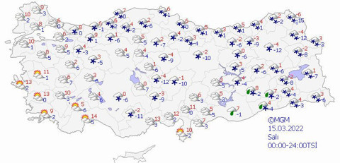 Galerinin tamamı için tıklayınızAkdeniz: Parçalı ve az bulutlu, doğusunun yer yer çok bulutlu geçeceği tahmin ediliyor. Bölgenin iç kesimlerinde buzlanma ve don olayı bekleniyor. Rüzgârın, iç kesimlerinde kuzeyli yönlerden kuvvetli ve yer yer fırtına(40-90 km/saat) şeklinde esmesi bekleniyor.