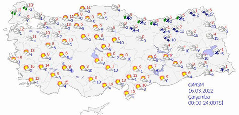 Batı Karadeniz: Parçalı ve çok bulutlu, bölge genelinin karla karışık yağmur ve kar yağışlı geçeceği tahmin ediliyor. Sabah ve gece saatlerinde bölge genelinde buzlanma ve don olayı bekleniyor.