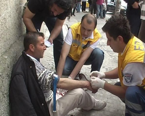Galerinin tamamı için tıklayınızEdirne'de 2 çocuğunun annesi ile şiddetli geçimsizlik nedeniyle bir süre önce boşanan Ümit Fidan, bunalıma girince dün akşam Talatpaşa Caddesi üzerindeki tarihi Eski Cami'nin duvarına yaslandı ve elindeki jiletle bileklerini kesmeye başladı.