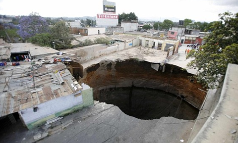 Galerinin tamamı için tıklayınız2007 yılında yine başkent Guatemala'da oluşan devasa obruk evleri ve araçları yutmuş 3 kişi ölmüştü. 2010 yılında ise benzer bir olayda 3 katlı bir bina obrukta yok olmuştu