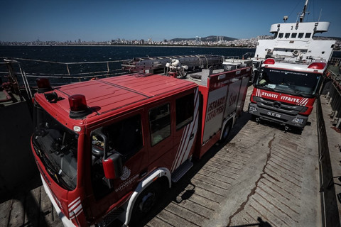 Galerinin tamamı için tıklayınızYangına Burgazada itfaiye ekipleri müdahale ediyor. İstanbul'un çeşitli ilçelerinden sevk edilen itfaiye araçları çıkarma gemisi ile adaya götürülürken, bir helikopter havadan yangına müdahale ediyor.