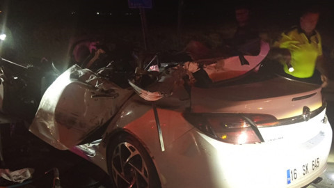Karacabey'den Mustafakemalpaşa istikametine giden Süleyman K. (19) idaresindeki 16 SK 645 plakalı otomobil, tali yoldan ana yola çıkan Ramazan Ç. yönetimindeki 16 ALZ 236 plakalı kamyonla çarpıştı.Sağlık ekipleri, otomobil sürücüsü Süleyman K. ile otomobilde bulunan sürücünün babası Şükrü K. (52) ve annesi Fatma K'nin (45) olay yerinde hayatını kaybettiğini belirledi.Kazada Süleyman K'nin 5 yaşındaki kardeşi Alaattin K. ise yaralandı.Yaralı çocuk, sağlık ekiplerince Karacabey Devlet Hastanesi'ne götürüldü.Kazada hayatını kaybeden Şükrü K'nin Karacabey İlçe Emniyet Müdürlüğü Bölge Trafik Denetleme İstasyon Amirliğinde polis memuru olarak görev yaptığı öğrenildi.