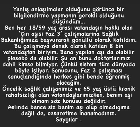 Galerinin tamamı için tıklayınız''Öncelik sağlık çalışanımız ve 65 yaş üstü kronik rahatsızlığı olan vatandaşlarımızken, benim aşı olmam söz konusu değildir.''