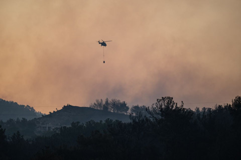 Galerinin tamamı için tıklayınız"Yaklaşık 260 arazöz ve iş makinesi ve 1500'e yakın personelimizle mücadele devam ediyor. Sabah gün ışımasıyla beraber gündüz açıklamış olduğumuz hava araçları ve helikopterlerin geri kalanları da yine mücadeleye katılmış olacaklar." dedi. Gün ağarınca tüm uçak ve helikopterler mücadeleye katıldı.