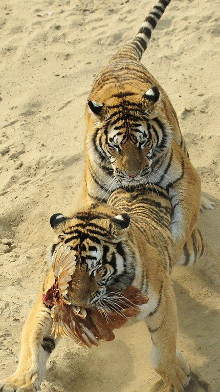 Çin'de turistler Kaplanları yakından görebilmek için canlı tavuğu ortaya attılar ve o anları böyle izlediler