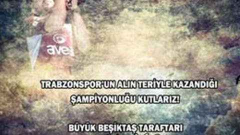 Kazım Koyuncu'nun üzerinde Trabzonspor formasıyla çekilmiş bir fotoğrafıyla yapılan kolajda, "Trabzonspor'un alın teriyle kazandığı şampiyonluğu kutlarız! Büyük Beşiktaş Taraftarı" ifadesi yer aldı.