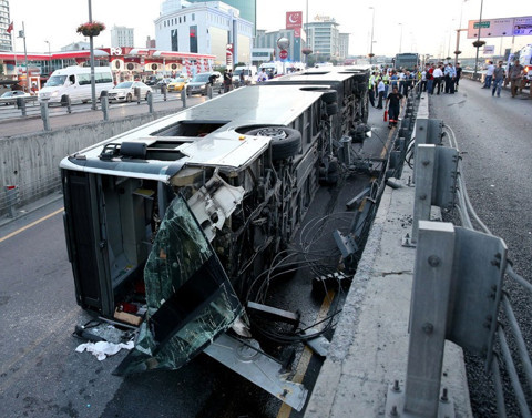 Cevizlibağ'da metrobüs devrildi yaralılar var
