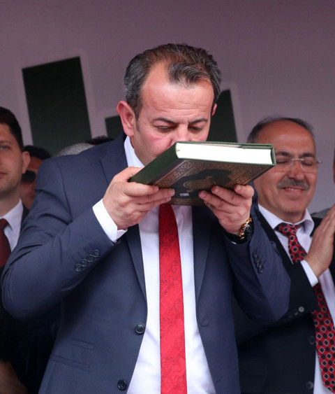 Çarşamba günü Bolu Adliyesindeki İl Seçim Kurulundan mazbatasını alan Özcan, Türkiye Büyük Millet Meclisindeki milletvekilliği iptal işlemlerinin ardından bugün Bolu Belediyesine geldi.Belediye girişinde personel ve çok sayıda vatandaş tarafından karşılanan Özcan, ilgililerle selamlaşarak sohbet etti.Belediye Başkanı Alaaddin Yılmaz da Özcan ve beraberindekileri makamında karşıladı.Özcan'ın tebrik eden ve görevinde başarılar dileyen Yılmaz, yerel seçimlerin bir genel seçim havasında geçtiğini söyledi.Tanju Özcan da Yılmaz'a teşekkür ederek, "Büyük bir sorumluluk aldığımın farkındayım. Milletvekilliği görevi tabii ki farklı bir görevdi. Yeni sistemde de daha rahat bir görevdi ama biz zor olanı tercih ettik. Bolu'muza doğrudan hizmet etmeyi tercih ettik. Sağ olsun vatandaşlarımız da çok yüksek bir oy oranı ile bu görevi bize tevdi etti." dedi. Devir teslim töreninin ardından belediye önünde kurulan sahneye çıkarak kendisini bekleyen vatandaşları selamladıktan sonra dua eden Özcan, sahnede bulunan Türk bayrağı ve Kuran'ı Kerim'i öptükten sonra el basarak yemin etti.Özcan, daha sonra beraberindekilerle Anıt Park'ta bulunan Atatürk Anıtı'na kadar belediye bandosu eşliğinde yürüdü. Devir teslim törenine, CHP ve İYİ Parti İl Başkanlığı yetkilileri ve partililer katıldı.