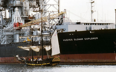 Galerinin tamamı için tıklayınızOkyanusun kilometrelerce altına ulaşarak, kayalıklarda maden aramak üzere tasarlanan bu devasa geminin amacının aslında madenle alakası yoktu. Gemi, Soğuk Savaş döneminin en büyük aldatmacalarından ve CIA'in en gizli operasyonlarından biri olacaktı. Bu devasa geminin esas görevi, altı yıl önce kaybolan bir Sovyet denizaltısını bulup çıkarmaktı.