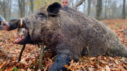 Abone olTokat'ın Erbaa ilçesinde avcılar tarafından ormanlık alanda yarım tonluk yaban domuzu avladı.