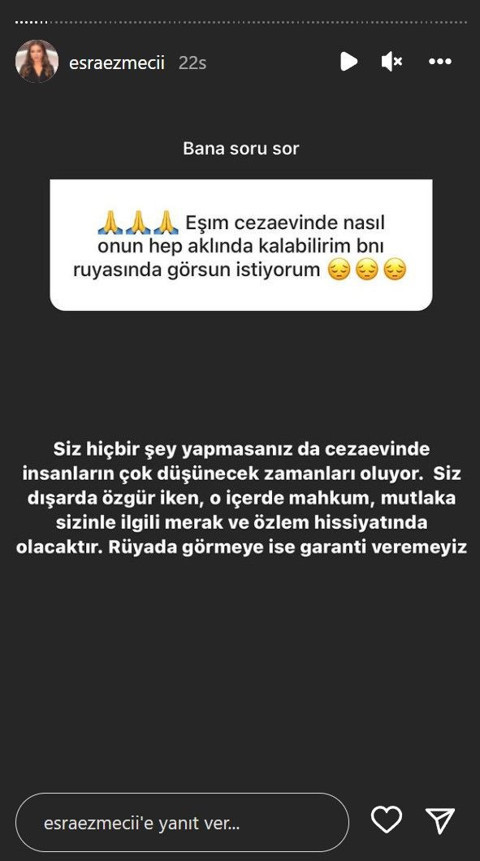 Instagram hesabında yaptığı soru cevap ve itiraf paylaşımlarıyla takipçi sayısını her geçen gün arttıran uzman psikolog Esra Ezmeci, Fulya ile Umudun Olsun programıyla geniş bir tanınırlığa ulaşmıştı.Ani bir kararla Ezmeci daha sonra programdan ayrılarak Beyaz TV'ye transfer olmuştu. Ezmeci, yazdığı kitaplarla ve kariyerindeki başarılarıyla adından sıkça söz ettiriyor.Cinsellikle ilgili sorunlara verdiği yanıtlarla dikkatleri üzerine çeken Ezmeci, takipçilerini hayrete düşürmeyi sürdürüyor. İtiraf ve soru cevap etkinliği yapan Ezmeci'ye yine onlarca yanıt yağdı.Ezmeci'ye gelen itiraflar bu sefer de 'yok artık' dedirtmeyi başardı. İşte Esra Ezmeci'ye gelen itiraflar...