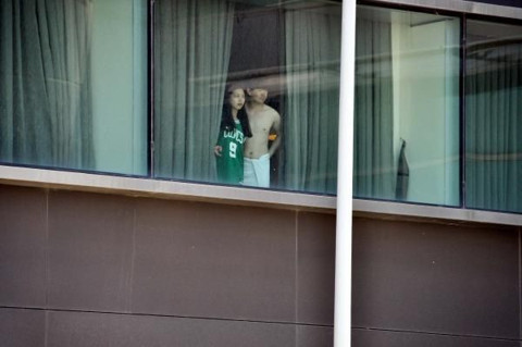 Galerinin tamamı için tıklayınızBu arada Başbakan Erdoğan'ın VİP salonuna girişinin ardından, salonun üstündeki otel odasının penceresinden belden yukarısı çıplak bir turist ile yanındaki kadın, dışarıdaki kalabalık ve konvoya bakarken objektiflere takıldı.