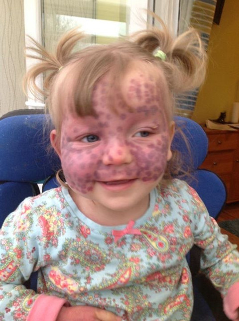 Galerinin tamamı için tıklayınızKüçük kızın suratında büyük ve koyu renkte doğum lekeleri çıktı. Doktorlar önce bunun morluk olduğunu düşünse de sonradan gerçeğin farkına vardılar.