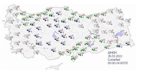 karışık yağmur ve kar şeklinde olması bekleniyor. Yağışların,