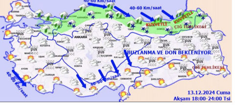 saatlerinde iç kesimlerinde buzlanma ve don olayı ile birlikte pus