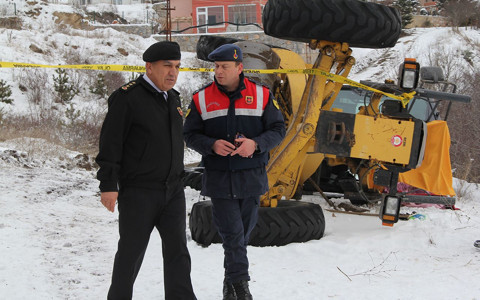 ÇORUM merkeze bağlı Atçalı köyünde karla mücadele çalışması yapan Murat Şahin'in kullandığı İl Özel İdaresine ait greyder, eğimli yolda devrildi.İş makinesinin altında kalan köy muhtarı Kenan Kümbet, kaza yerinde hayatını kaybetti.Kazada yaralanan greyder operatörleri Şahin ile Mertcan Üçtepe, ambulanslarla Hitit Üniversitesi Erol Olçok Eğitim ve Araştırma Hastanesine kaldırıldı.Kümbet'in cenazesi, iş makinesinin yardımıyla itfaiye ekiplerince greyderin altından çıkarılarak hastane morguna götürüldü.İl Jandarma Komutanı Kıdemli Albay İlhan Uzunoğlu ve İl Özel İdaresi Genel Sekreteri Recep Çıplak, kaza yerine gelerek bilgi aldı.