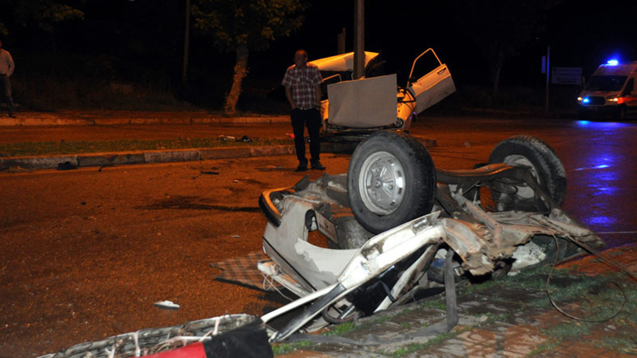 Çorum'da aydınlatma direğine çarparak ikiye ayrılan otomobildeki 1 kişi öldü, 4 kişi yaralandı. Alınan bilgiye göre, alkollü olduğu iddia edilen Mustafa Çanak'ın (25) kullandığı 19 EZ 020 plakalı otomobil, Gazi Caddesi'ndeki Çorum Belediyesi İtfaiye Müdürlüğü önünde orta refüjdeki aydınlatma direğine çarptı. İkiye ayrılan otomobilin ön tarafı direğin yanında kalırken, arka tarafı karşı şeride savruldu. Kazada sürücü Çanak ile beraberindeki Cengizhan Sözkeser (16), Abdulhamit Altın (17), Onur Öz (17) ve Oğuzhan Akbolat (15) otomobilden yola fırladı. İtfaiye Müdürlüğü çalışanlarının ihbarı üzerine olay yerine gelen ambulanslarla yaklaşık 100 metre uzaklıktaki Hitit Üniversitesi Çorum Eğitim ve Araştırma Hastanesine kaldırılan yaralılardan Onur Öz, müdahaleye rağmen kurtarılamadı. Tedavi altına alınan yaralıların sağlık durumlarının ciddiyetini koruduğu bildirildi.