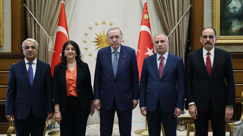 DEM Parti'den görüşme sonrası ilk açıklama geldi. Açıklamada "DEM Parti İmralı Heyeti üyelerimiz Pervin Buldan ve Mithat Sancar, bugün Sayın Cumhurbaşkanı Recep Tayyip Erdoğan’la Beştepe’de görüştü. Heyetimiz, sürecin geldiği yeni aşama ve bundan sonra yapılacaklar konusunda görüş ve önerilerini aktardı. Görüşmede, sürecin ilerlemesi konusunda karşılıklı iradenin devam ettiği vurgulandı." ifadeleri yer aldı.