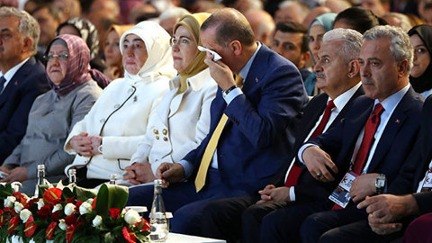 Cumhurbaşkanı Erdoğan gözyaşlarına boğuldu! Galerinin tamamı için tıklayınız Cumhurbaşkanı Recep Tayyip Erdoğan, AK Parti 3. Olağanüstü Büyük Kongresi'nin yapıldığı Ankara Spor Salonu'na geldi. Kongreye Başbakan Binali Yıldırım da katıldı.