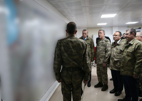 Suriye sınırında birliklerde inceleme yapan Cumhurbaşkanı Recep Tayyip Erdoğan, Zeytin Dalı Harekatı'na katılan birlikleri denetleyerek Mehmetçik'e moral verdi.Cumhurbaşkanı Recep Tayyip Erdoğan, Zeytin Dalı Harekatı'nın 6. gününde Hatay'daki Harekat Merkezi'ne gitti. Cumhurbaşkanı Erdoğan, Genelkurmay Başkanı Orgeneral Hulusi Akar’la birlikte bugün akşam saatlerinde Ankara’dan Zeytin Dalı Harekatı’nın sevk ve idaresinden sorumlu olan 2. Ordu’nun Hatay’daki Harekat Merkezi’ne geçti. Cumhurbaşkanı Erdoğan’a Başbakan Yardımcısı Bekir Bozdağ, Savunma Bakanı Nurettin Canikli, Kara Kuvvetleri Komutanı Orgeneral Yaşar Güler de refakat etti. Cumhurbaşkanı Erdoğan, daha sonra da harekatla ilgili daha detaylı bilgiler aldığı toplantı esnasında, video konferans aracılığıyla Genelkurmay Başkanlığı, Kara Kuvvetleri Komutanlığı, Hava Kuvvetleri Komutanlığı, Deniz Kuvvetleri Komutanlığı ve Hava Kuvvetleri Eskişehir Muharebe Üs Komutanlığındaki harekat merkezleriyle canlı bağlantılar gerçekleştirdi. Bu arada, Cumhurbaşkanı Erdoğan, Zeytin Dalı Harekatı’nın sevk ve idaresinden sorumlu olan 2. Ordu’nun Hatay’daki Harekat Merkezi’nde görev yapan askerlere hitap etti. Erdoğan, Zeytin Dalı Harekatı'nın sevk ve idaresinden sorumlu olan 2. Ordu'nun Hatay'daki Harekat Merkezi'nde görev yapan askerlere hitaben yaptığı konuşmada, ulusal güvenliği sağlama nedeniyle Afrin’de gerçekleştirilen operasyonun bölgeyi terör unsurlarından temizlemeyi amaçladığına dikkati çekti.Cumhurbaşkanı Erdoğan, ulvi bir görev icra ettiklerini hatırlattığı askerlere başarı dileklerini de iletti. Cumhurbaşkanı Erdoğan, daha sonra da harekatla ilgili daha detaylı bilgiler aldığı toplantı esnasında, video konferans aracılığıyla Genelkurmay Başkanlığı, Kara Kuvvetleri Komutanlığı, Hava Kuvvetleri Komutanlığı, Deniz Kuvvetleri Komutanlığı ve Hava Kuvvetleri Eskişehir Muharebe Üs Komutanlığındaki harekat merkezleriyle canlı bağlantılar gerçekleştirdi. Cumhurbaşkanı Erdoğan, video konferans aracılığıyla yaptığı hitapta da Zeytin Dalı Harekatı'nın netice alınana dek süreceğini vurguladı. Türkiye'nin hiçbir ülkenin toprağında gözü olmadığını belirten Cumhurbaşkanı Erdoğan, Afrin'in de terör unsurlarından temizlenmesinin akabinde asli sakinlerine teslim edileceğini söyledi. Gündem Türkiye Dünya Ekonomi Spor Sağlık Yaşam Kültür-Sanat Eğitim Teknoloji Reklamı Kapat Buradasınız : Ana Sayfa »Gündem » Cumhurbaşkanı Recep Tayyip Erdoğan Suriye sınırındaCumhurbaşkanı Recep Tayyip Erdoğan Suriye sınırındaSuriye sınırında birliklerde inceleme yapan Cumhurbaşkanı Recep Tayyip Erdoğan, Zeytin Dalı Harekatı'na katılan birlikleri denetleyerek Mehmetçik'e moral verdi.25 Ocak 2018 Perşembe 18:27facebookta paylaş Share on Google+ yazıyı büyütyazıyı küçült Cumhurbaşkanı Recep Tayyip Erdoğan, Zeytin Dalı Harekatı'nın 6. gününde Hatay'daki Harekat Merkezi'ne gitti. GALERİ | Cumhurbaşkanı Erdoğan kamuflajını giydi, sınırda Harekat Merkezi'ni denetledi Harekat Merkezi’ne geçti Cumhurbaşkanı Erdoğan, Genelkurmay Başkanı Orgeneral Hulusi Akar’la birlikte bugün akşam saatlerinde Ankara’dan Zeytin Dalı Harekatı’nın sevk ve idaresinden sorumlu olan 2. Ordu’nun Hatay’daki Harekat Merkezi’ne geçti. Bozdağ, Canikli ve Güler de refakat etti Cumhurbaşkanı Erdoğan’a Başbakan Yardımcısı Bekir Bozdağ, Savunma Bakanı Nurettin Canikli, Kara Kuvvetleri Komutanı Orgeneral Yaşar Güler de refakat etti. Harekat ile ilgili bilgi aldı Cumhurbaşkanı Erdoğan, daha sonra da harekatla ilgili daha detaylı bilgiler aldığı toplantı esnasında, video konferans aracılığıyla Genelkurmay Başkanlığı, Kara Kuvvetleri Komutanlığı, Hava Kuvvetleri Komutanlığı, Deniz Kuvvetleri Komutanlığı ve Hava Kuvvetleri Eskişehir Muharebe Üs Komutanlığındaki harekat merkezleriyle canlı bağlantılar gerçekleştirdi. Harekat Merkezi’nde görev yapan askerlere hitap etti Bu arada, Cumhurbaşkanı Erdoğan, Zeytin Dalı Harekatı’nın sevk ve idaresinden sorumlu olan 2. Ordu’nun Hatay’daki Harekat Merkezi’nde görev yapan askerlere hitap etti. Erdoğan, Zeytin Dalı Harekatı'nın sevk ve idaresinden sorumlu olan 2. Ordu'nun Hatay'daki Harekat Merkezi'nde görev yapan askerlere hitaben yaptığı konuşmada, ulusal güvenliği sağlama nedeniyle Afrin’de gerçekleştirilen operasyonun bölgeyi terör unsurlarından temizlemeyi amaçladığına dikkati çekti. Cumhurbaşkanı Erdoğan, ulvi bir görev icra ettiklerini hatırlattığı askerlere başarı dileklerini de iletti. "Netice alınana dek sürecek" Cumhurbaşkanı Erdoğan, daha sonra da harekatla ilgili daha detaylı bilgiler aldığı toplantı esnasında, video konferans aracılığıyla Genelkurmay Başkanlığı, Kara Kuvvetleri Komutanlığı, Hava Kuvvetleri Komutanlığı, Deniz Kuvvetleri Komutanlığı ve Hava Kuvvetleri Eskişehir Muharebe Üs Komutanlığındaki harekat merkezleriyle canlı bağlantılar gerçekleştirdi. Cumhurbaşkanı Erdoğan, video konferans aracılığıyla yaptığı hitapta da Zeytin Dalı Harekatı'nın netice alınana dek süreceğini vurguladı. Türkiye'nin hiçbir ülkenin toprağında gözü olmadığını belirten Cumhurbaşkanı Erdoğan, Afrin'in de terör unsurlarından temizlenmesinin akabinde asli sakinlerine teslim edileceğini söyledi. Cumhurbaşkanı Erdoğan, bölgenin terörden temizlenmesinin Türkiye'deki Suriyelilerin ülkelerine dönüşlerini de hızlandıracağını belirtti. Cumhurbaşkanı Erdoğan, Hatay'da bulunduğu esnada Mogadişu'daki Somali Türk Görev Kuvveti Komutanlığı ve Doha'daki Katar Türk Birleşik Müşterek Kuvvet Komutanlığıyla da video konferansla bağlanmak suretiyle söz konusu üsler hakkında bilgi aldı.Sürpriz 
