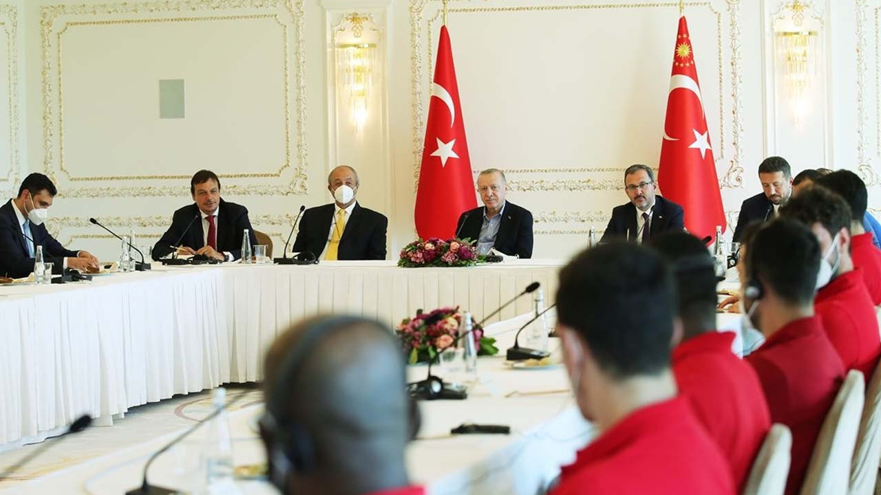 Basketbolda Anadolu Efes, hem ligde hem de Euroleague'de şampiyonluğa ulaşmış, sezonu çifte kupayla tamamlamıştı.Cumhurbaşkanı Recep Tayyip Erdoğan, Avrupa'da gurur yaşatan Anadolu Efes'i bugün kabul etti.Erdoğan, Üsküdar'da bulunan Cumhurbaşkanlığı Vahdettin Köşkü'nde, Anadolu Efes'in Başkanı Tuncay Özilhan ile teknik heyet ve basketbolcularını ağırladı. Basına kapalı gerçekleşen görüşmede Gençlik ve Spor Bakanı Mehmet Muharrem Kasapoğlu ve Türkiye Basketbol Federasyonu Başkanı Hidayet Türkoğlu da yer aldı.