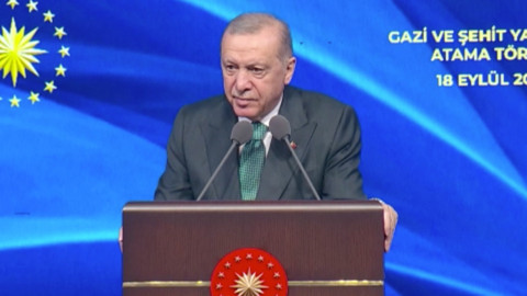"Şehitlerin manevi gölgeleri, asırlardır olduğu gibi bugün de bize refakat ediyor." diyen Erdoğan, "Şehit ve gazi yakınlarını daima bağrıma basmış bir milletiz. Bu vatan bize şehitlerimizin emanetidir." ifadelerini kullandı.