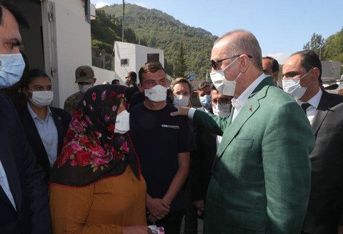 Erdoğan, helikopter ile sel felaketinin yaşandığı Giresun'un Dereli ilçesine geldi. Erdoğan, vatandaşlarla sohbet etti.