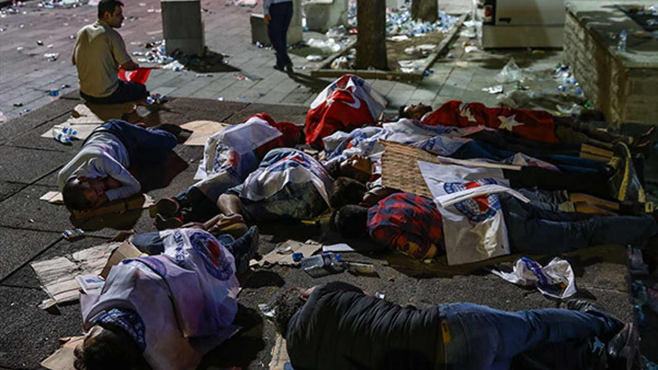 Ankara'da milletin demokrasi nöbeti sabaha kadar sürdü. Vatandaşlar, meydanları terk etmedi. Ankara'da Kızılay Meydanı'nda toplanan vatandaşlar, FETÖ'nün darbe girişimini protesto etti. MEYDANLARDA SABAHLADILAR Vatandaşların bekleyişi sabah saatlerine kadar sürdü. Meydanda sabahlayan bazı vatandaşlar banklarda ve alanlarda uyudu.