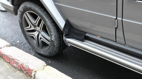 Kameraları fark edince hızlıca aracına binen Deniz Çakır'ın, kıyafeti kapıya sıkışınca kapısını açmak zorunda kaldı.
