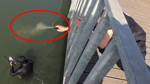 Denizdeki kaçak avcıya biber gazlı müdahale Galerinin tamamı için tıklayınız Körfezde kaçak midye avlayan şahıslara polis baskın yaptı. Ancak denizden çıkmak istemeyen kaçak avcılara polisin köprü üstünden biber gazı sıkması enterasan bir görüntü oluşturdu.