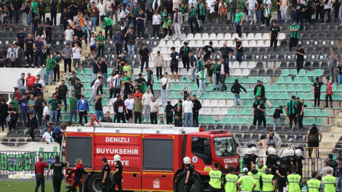 Ancak holiganlar bu kez koltukları itfaiye ekiplerine fırlatmaya başladı.