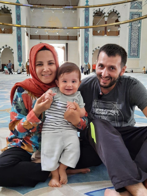 Galerinin tamamı için tıklayınızBir camide çiftin minik oğullarıyla birlikte çekildiği fotoğraf yürekleri sızlattı.