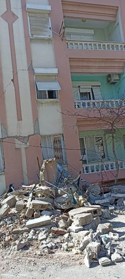 Galerinin tamamı için tıklayınızCaddeye çıktığımızda ön ve arka binamız yıkılmış, sesler, feryatlar ve çığlıklar duyduk ama kimseye yardım edemiyorduk, kendimize bile hayrımız olmuyordu. Çok kötüydü her taraf yıkılmış. Eşim bana aracımızı alacağını söyledi ama aracımızın bütün camları kırıktı. Aracımızda kaldık iki gece, iki gece de çadırda kaldık" dedi.