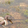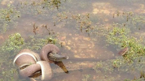 Nehir yatağında karşılaşan iki vahşi yırtıcı arasındaki bu mücadele görenleri dehşete düşürdü. Genç timsahı gözüne kestiren piton ani bir hareketle timsahın üzerine atladı. Dev piton kısa sürede timsahı savunmasız bırakarak timsahı tek lokmada yuttu. İşte o mücadeleden hayrete düşüren fotoğraflar...