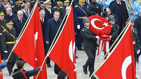 Devlet erkanı Anıtkabir'de! İşte Erdoğan'ın 29 Ekim mesajı Galerinin tamamı için tıklayınız Cumhuriyetin ilanının 93. yıl dönümünde Cumhurbaşkanı Recep Tayyip Erdoğan başkanlığındaki devlet erkanı Anıtkabir'i ziyaret ederek çelenk sundu.