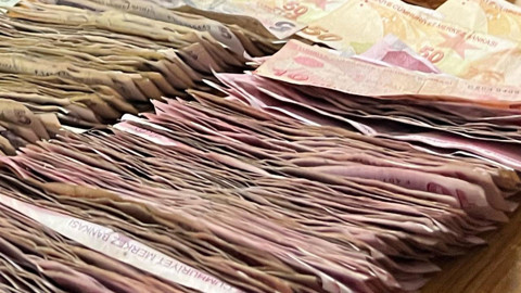 Araçtaki çöp poşetinden ve dilencilik yaptıkları öne sürülen 3 kişinin üzerinden toplam 42 bin 32 lira ve bir miktar döviz çıktı.