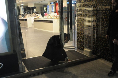 Galerinin tamamı için tıklayınızKapanış saatinden sonra geldiği mağazada 2 buçuk saatte 50 bin TL’lik alışveriş yapan sanatçı, muhabirleri atlatmak için mal kabul asansörünü kullandı.