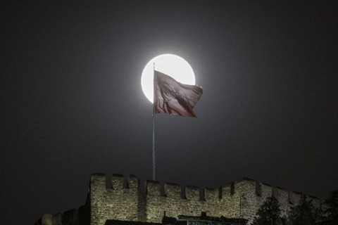 Galerinin tamamı için tıklayınızBaşkentte dolunay ve Ankara Kalesi'nde dalgalanan Türk Bayrağı güzel görüntü oluşturdu.
