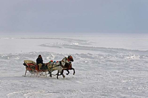 Kars-Ardahan illeri arasında yer alan ve Doğu Anadolu Bölgesi’nin ikinci büyük gölü olan Çıldır Gölü, bölgedeki kızak sahiplerine ekmek kapısı oldu.