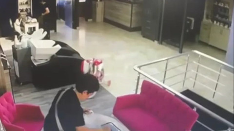 O anlar kuaförün güvenlik kameralarına yansıdı.