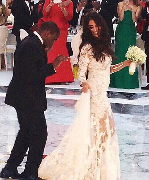 Şarkıcı Robin Thicke'nin de sahneye çıktığı gecede model olan İran asıllı gelin Nazanin Jafarian Ghaissarifa iki farklı gelinlik giydi.
