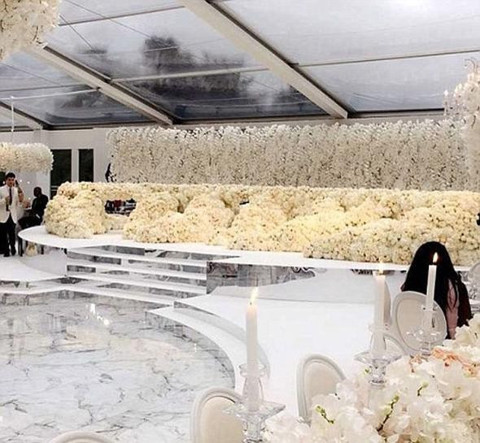 Salonun 1 milyon tane gülle süslenme işini Kardashian ailesinin evlerini de süsleyen Jeff Leatham üstlendi.