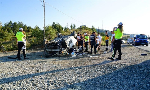 Galerinin tamamı için tıklayınızEdinilen bilgiye göre, İstanbul’dan hem Kurban Bayramı tatili hem de kızının düğünü için Sinop’a giden İsmail Güzelaydın (47) idaresindeki 34 NR 6615 plakalı otomobil, Kastamonu-Karabük karayolu 10. kilometresinde şarampolde kum yığınına çarparak taklalar attı.