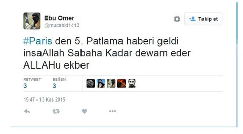 Galerinin tamamı için tıklayınızDün gece Fransa'nın başkenti Paris'te art arda silahlı ve bombalı saldırılar düzenlendi. 7 ayrı saldırda en az 120 kişi hayatını kaybetti. CNN International, can kaybını 153 olarak duyurdu. Dünya olayın şokunu ve yasını yaşarken bir kısım sosyal medya kullanıcısı bu saldırıları kutladı ve destekledi.