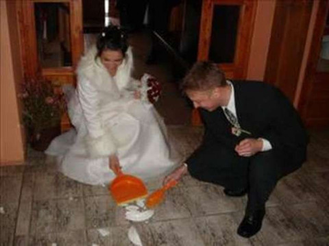 girerken ayaklarının önüne tabak kırılır ardından çift