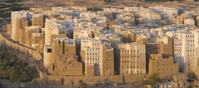 Yemen'deki Shibam şehri, çölün ortasında bulunan, kalın taş duvarla çevrili bir gökdelen vahası gibi görünüyor.